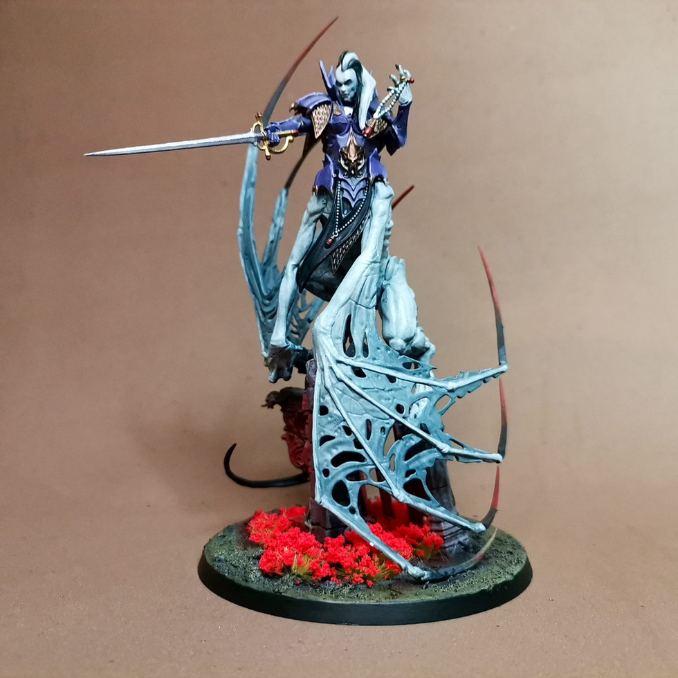 Standing tall over the battlefield as a bestial mixture of bat-fiend, drake and vampire, Lauka Vai strikes down would-be challengers with ease befitting a noble knight in monstrous form. While she retains her wits and keeps her thirst at bay, fellow Soulblight monsters hang on her every word, but a deadly rage can descend at any moment and turn the Mother of Nightmares into a charging, howling whirlwind of carnage.